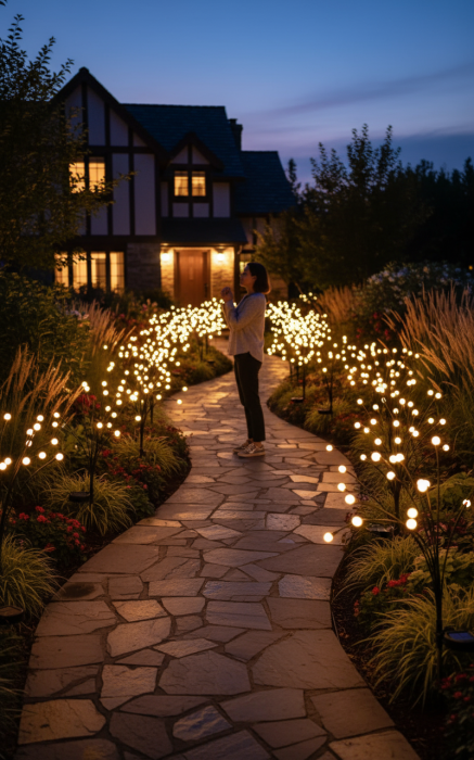 Set de 2 Lămpi Solare de Grădină cu Licurici Multicolor/Alb Cald – Eleganță și Magie în Spațiul Exterior