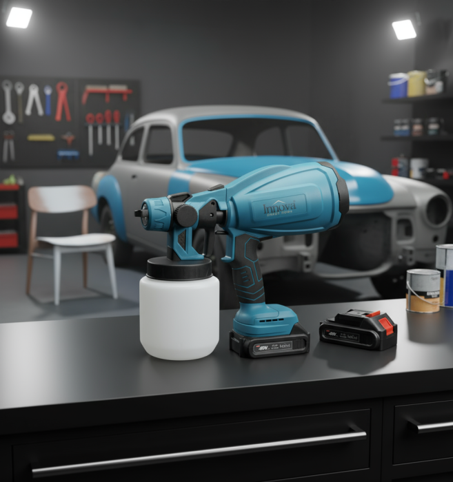 Cu o putere de 800W și alimentare prin acumulatori Li-Ion de 48V, pistolul de pulverizare fără fir Innova Smart Home este soluția ideală pentru proiecte de vopsire rapide, uniforme și fără urme. Perfect pentru lucrări DIY, tâmplărie, auto sau industriale, acest dispozitiv asigură o acoperire eficientă și profesională.