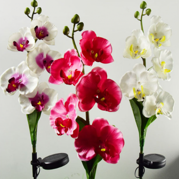 🌺 Creeaza un efect vizual spectaculos cu acest set de 2 lampi solare in forma de orhidee rosie sau mov! Florile rosii stralucesc subtil pe timpul noptii, oferind o atmosfera intima si calda. Se incarca ziua la soare si lumineaza automat noaptea.