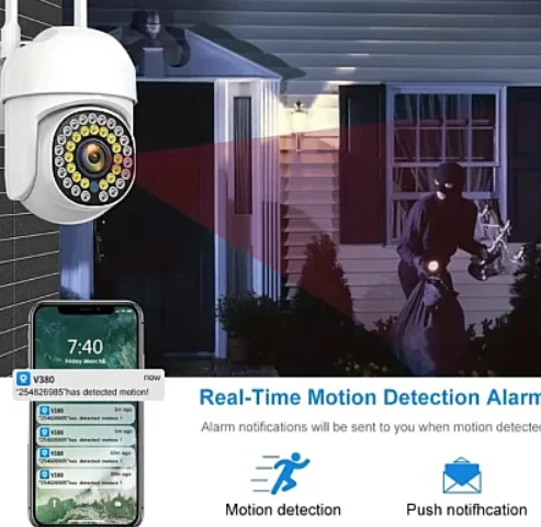 Camera are senzor miscare, face captura foto si trimite aceasta captura pe telefon, puteti programa functia de alarma la miscare, pentru a nu va deranja tot timpul.